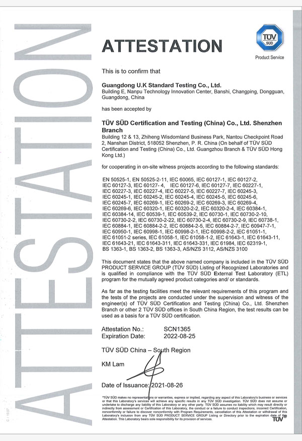 TUV南德目擊測試授權(quán)實(shí)驗(yàn)室